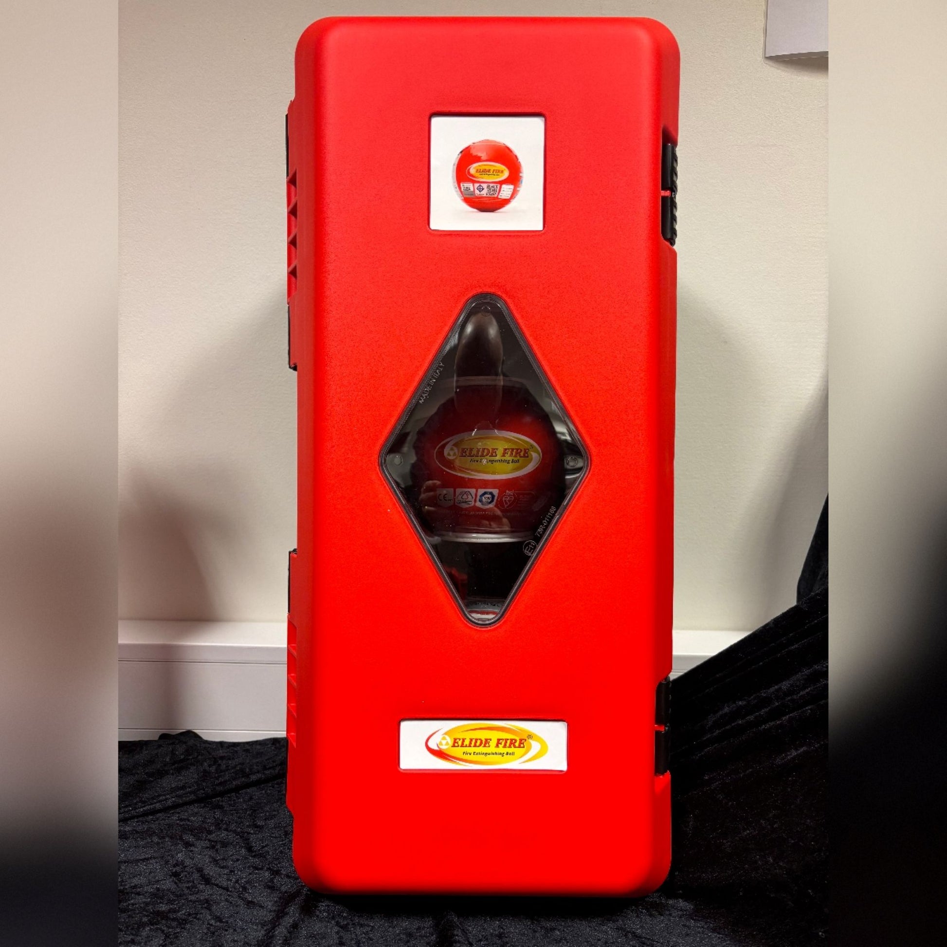 Robust skap som innholder 3 stk Elide Fire Love Care 1,4 kg